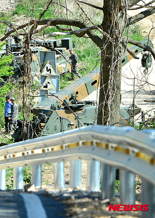 韓国軍:海兵隊の自走砲、浦項で横転事故(4/5)