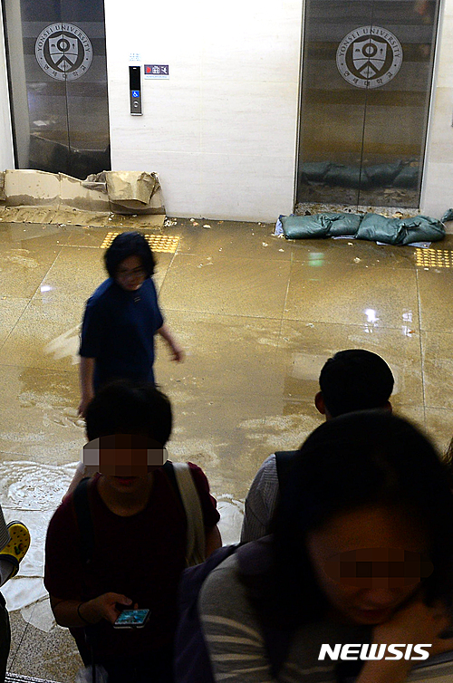 延世大学中央図書館、梅雨で水びたしに(7/7)