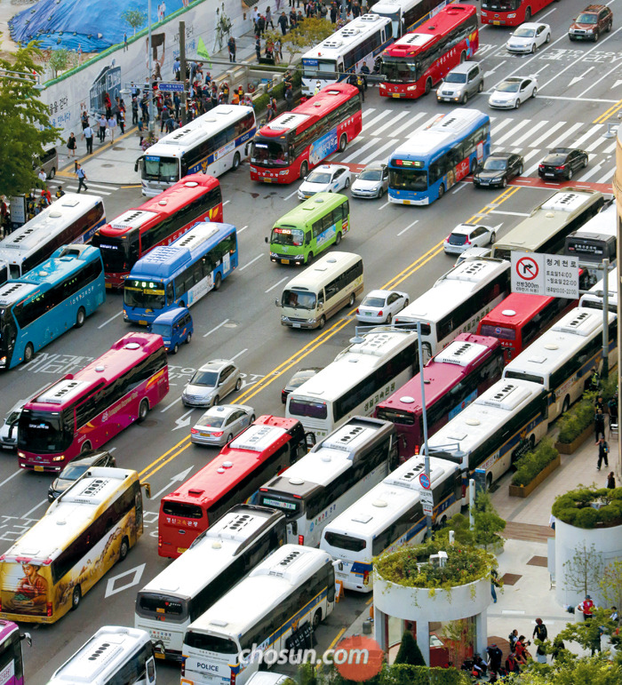 平日の帰宅時間帯にソウル都心でデモ、周辺は大混雑(3/3)