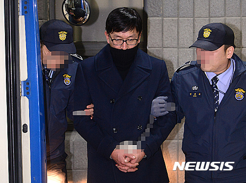 かつらを外して地検に入るチャ・ウンテク氏(5/13)