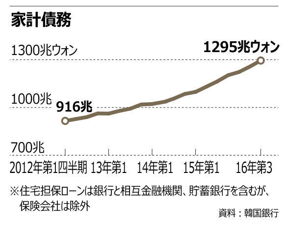 家計債務:韓国の世帯29%が債務増=1世帯平均1000万円(1/1)
