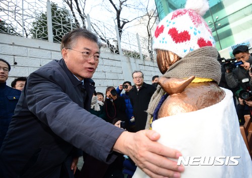 釜山の少女像を訪れた文在寅氏(6/12)