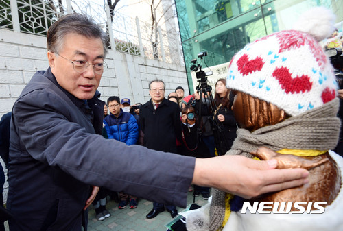 釜山の少女像を訪れた文在寅氏(7/12)