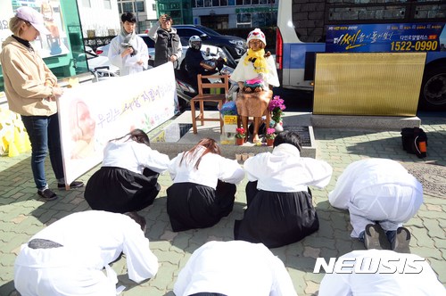平和の少女像に新年のごあいさつ(5/6)