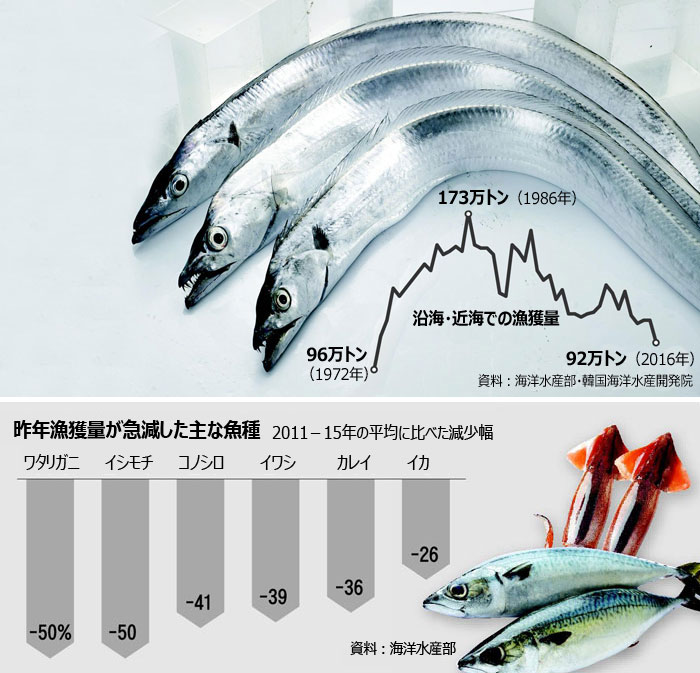 韓国近海、乱獲と気候変化で漁獲量急減(1/1)