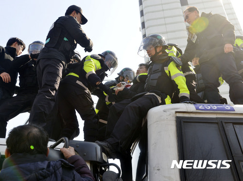 もみあいを繰り広げるデモ隊と警察(5/6)