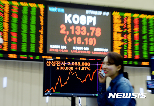KOSPIが今年の最高値更新、職員の顔に笑み(4/7)