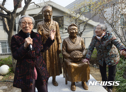 元慰安婦、金福童・吉元玉さんの像の除幕式(4/9)
