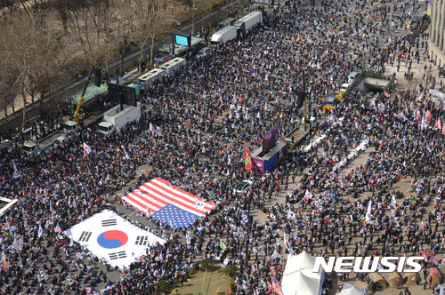 朴・前大統領の逮捕を糾弾する保守系の太極旗集会(5/9)