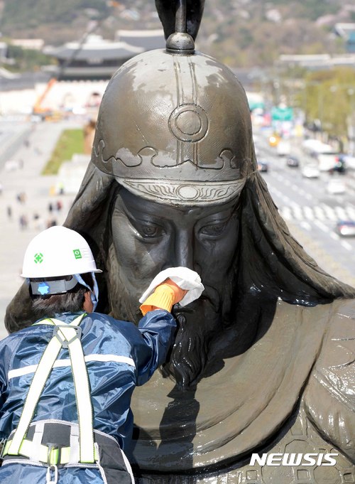 光化門の李舜臣像、シャワーですっきり(5/6)