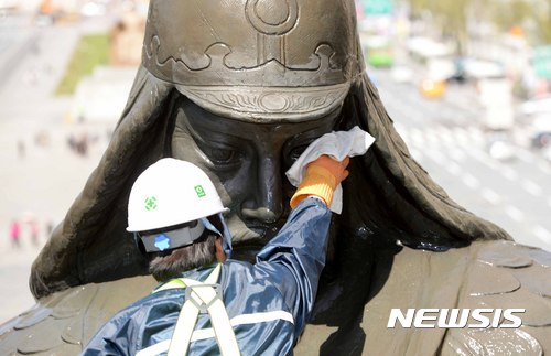 光化門の李舜臣像、シャワーですっきり(6/6)