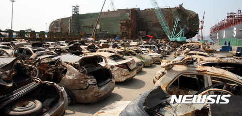 セウォル号の船内から取り出された自動車(3/8)