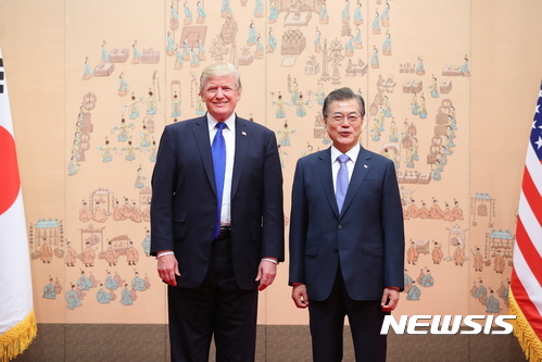 握手する文大統領とトランプ大統領(12/13)