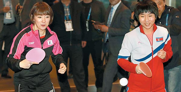 卓球女子:27年ぶりに南北合同チーム結成、決勝進出かけ日本と対戦=卓球世界選手権(1/1)