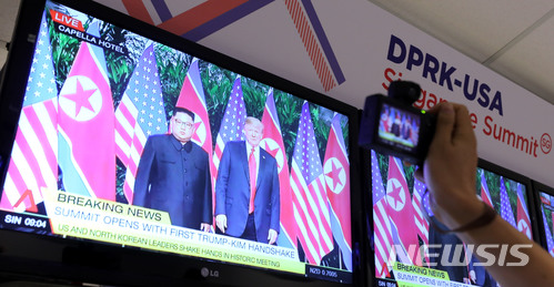 米朝首脳会談:歴史的対面をカメラに収める取材陣(3/9)