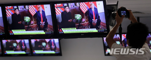米朝首脳会談:歴史的対面をカメラに収める取材陣(7/9)