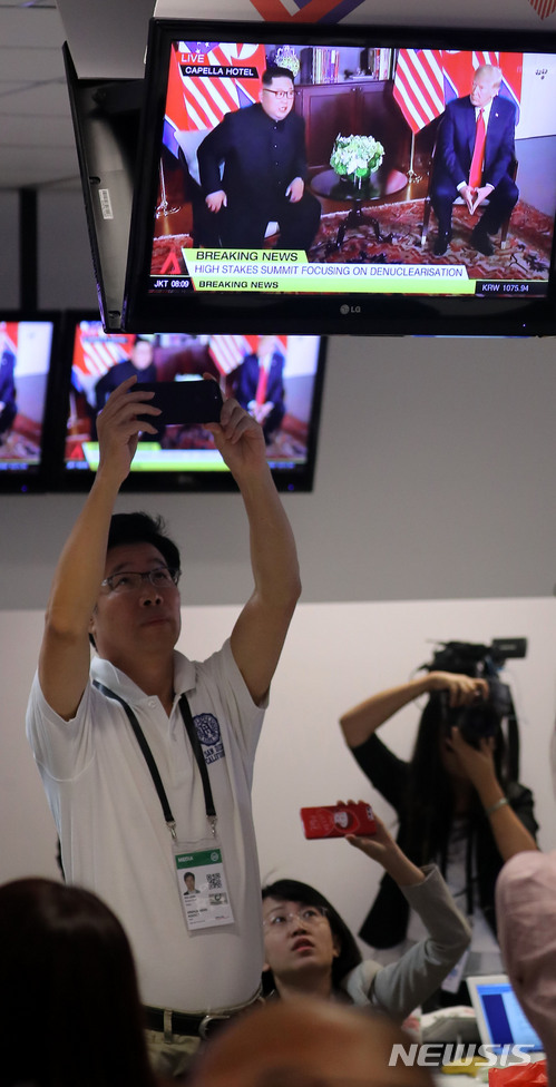 米朝首脳会談:歴史的対面をカメラに収める取材陣(8/9)