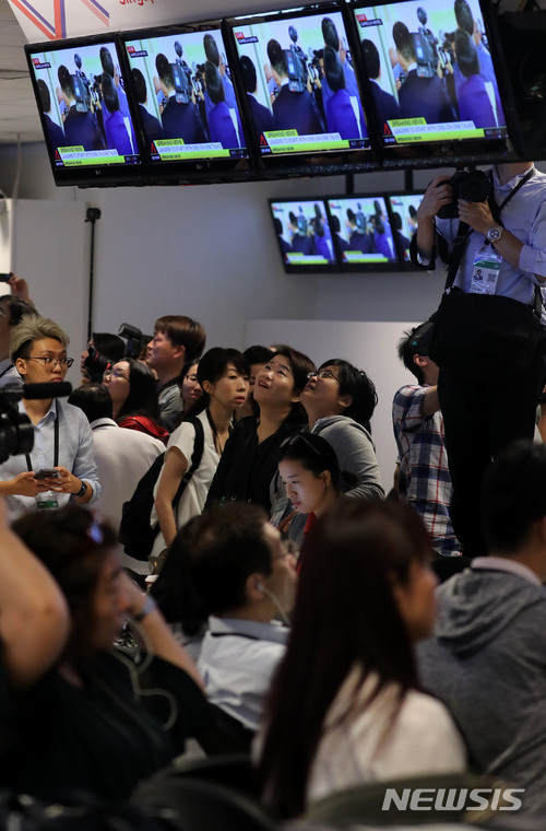 米朝首脳会談:歴史的対面をカメラに収める取材陣(9/9)