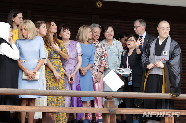 G20大阪:記念撮影するファーストレディーたち(13/19)