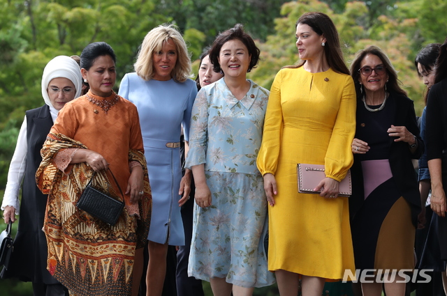 G20大阪:記念撮影するファーストレディーたち(14/19)