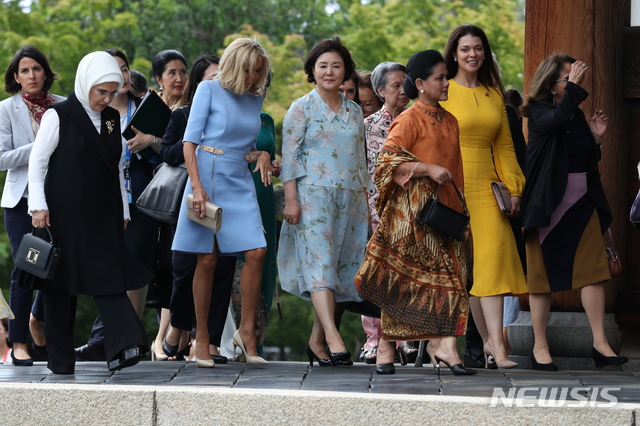 G20大阪:記念撮影するファーストレディーたち(15/19)