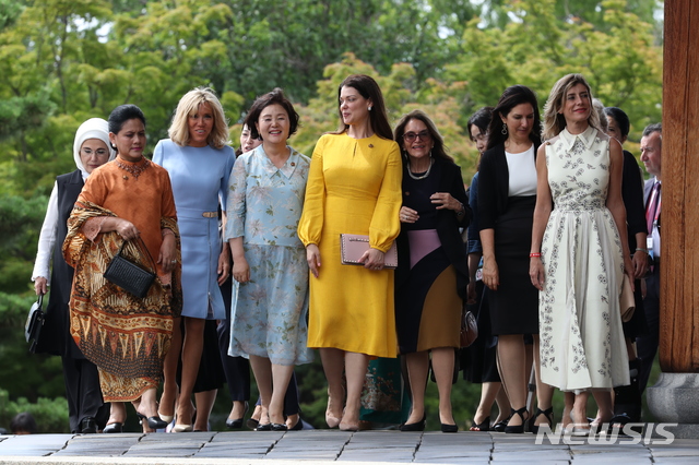 G20大阪:記念撮影するファーストレディーたち(16/19)