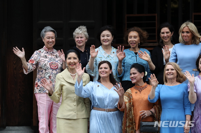 G20大阪:記念撮影するファーストレディーたち(3/19)