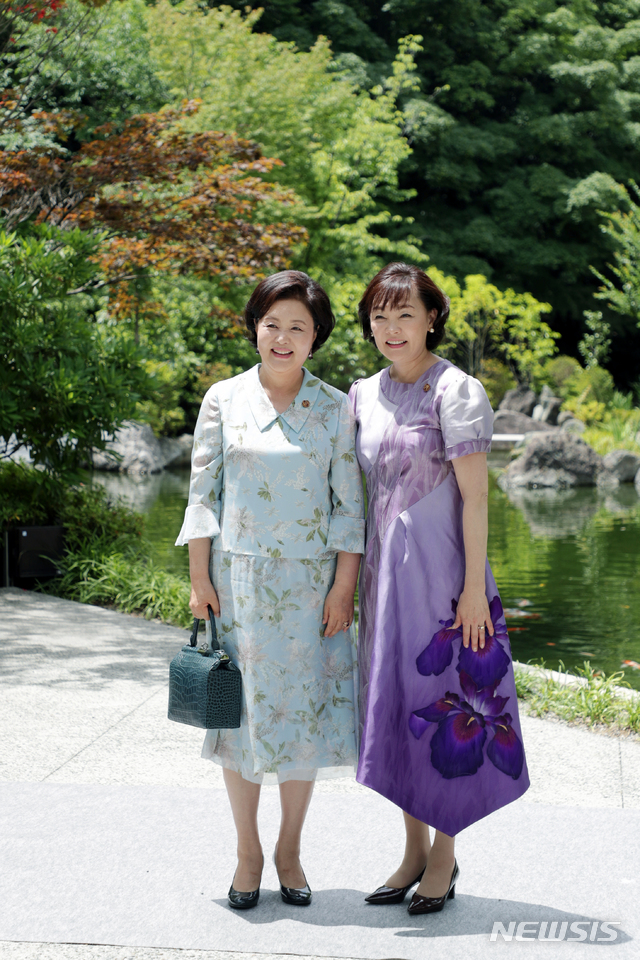 G20大阪:記念撮影するファーストレディーたち(7/19)