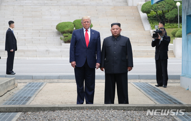 板門店の軍事境界線で対面した米朝首脳(13/21)