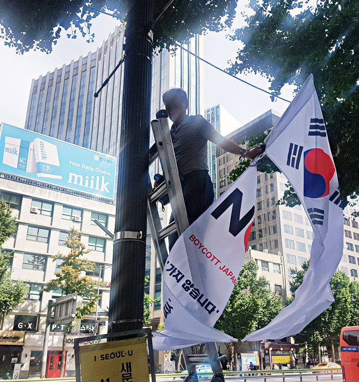 ソウル市中区庁長が掲揚指示「NOジャパン」旗、商店主ら反発で4時間後に撤去(2/2)