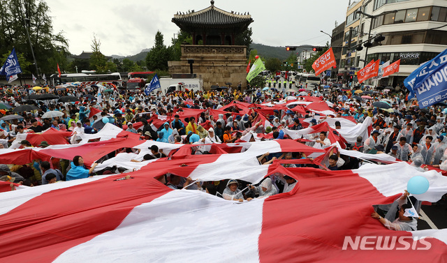 日本大使館前で引き裂かれる旭日旗(7/9)