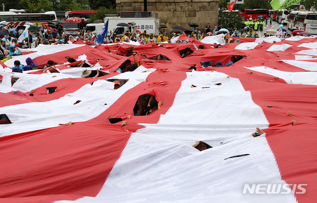 日本大使館前で引き裂かれる旭日旗(9/9)