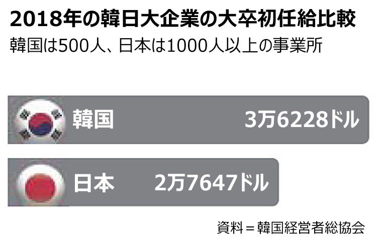 韓国大企業の大卒年収、日本を30%上回る(1/1)