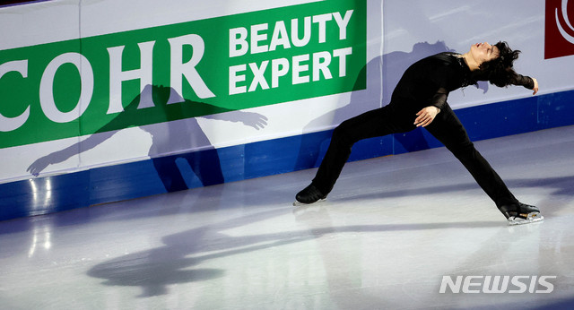 記念撮影する車俊煥×羽生×ブラウン=フィギュア四大陸選手権(14/19)