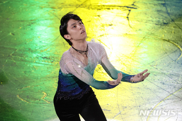 記念撮影する車俊煥×羽生×ブラウン=フィギュア四大陸選手権(6/19)