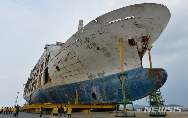 貨客船「セウォル号」沈没事故から6年 船体を見つめる犠牲者の家族たち(3/10)