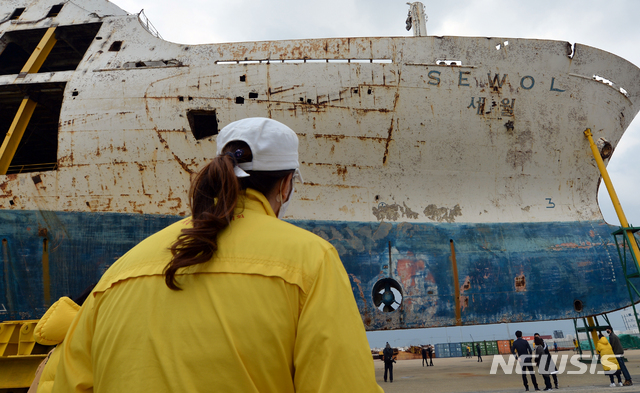 貨客船「セウォル号」沈没事故から6年 船体を見つめる犠牲者の家族たち(4/10)