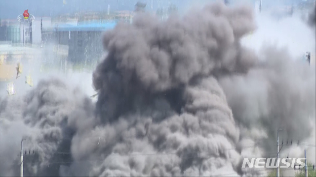 北朝鮮、開城・南北連絡事務所の爆破映像を公開(8/9)