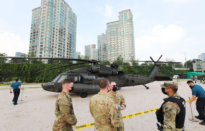 すんでのところで…米軍ヘリ、エンジン異常で漢江公園に緊急着陸(1/1)