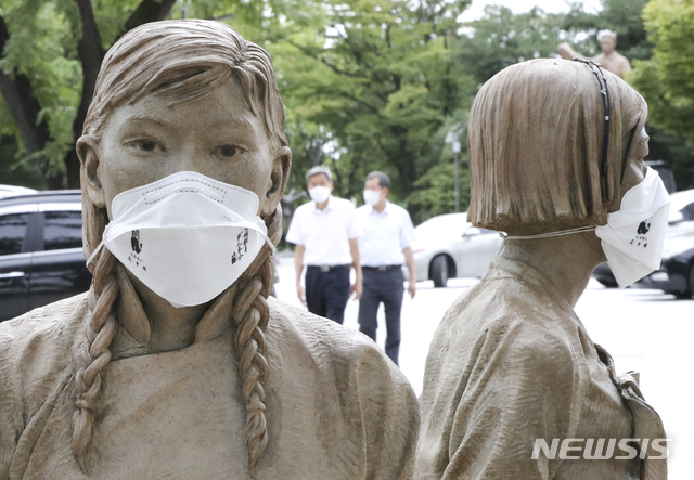 「日本軍慰安婦被害者をたたえる碑」に安重根の言葉を記したマスク(1/8)