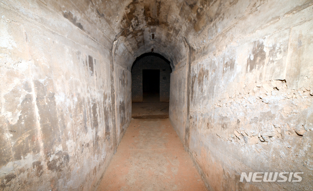 日帝時代の軍事用と推定される地下壕の内部(13/14)