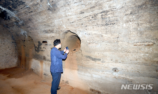 日帝時代の軍事用と推定される地下壕の内部(5/14)