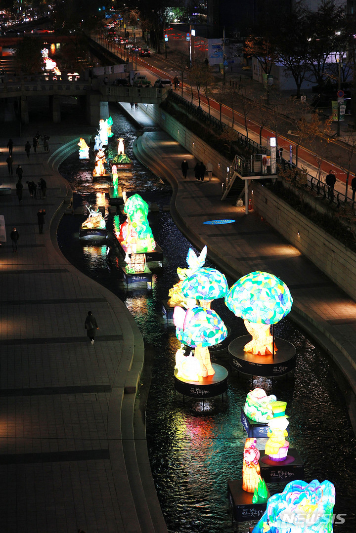 清渓川を照らす色とりどりのオブジェ(2/14)