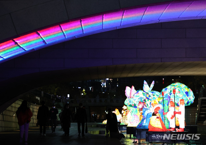 清渓川を照らす色とりどりのオブジェ(7/14)