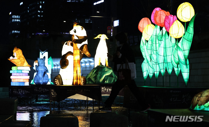清渓川を照らす色とりどりのオブジェ(9/14)
