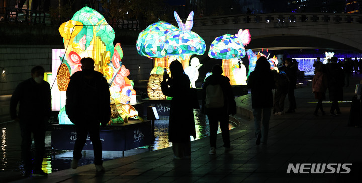 清渓川を照らす色とりどりのオブジェ(10/14)
