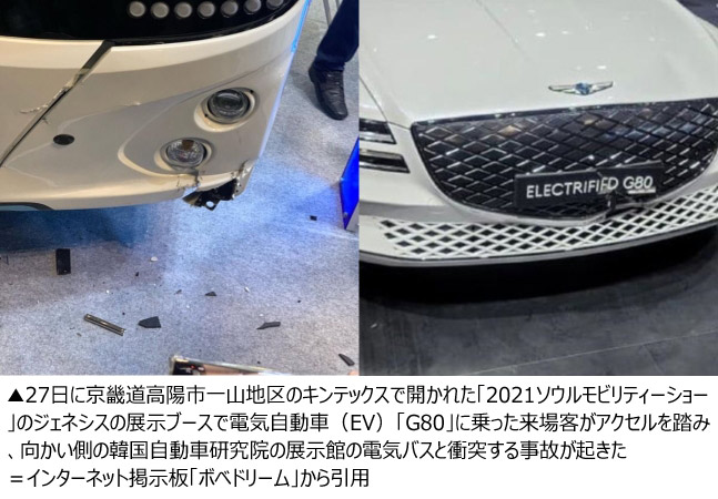 来場客が展示車のアクセル踏み急発進、バスに衝突=ソウルモビリティーショー(2/2)