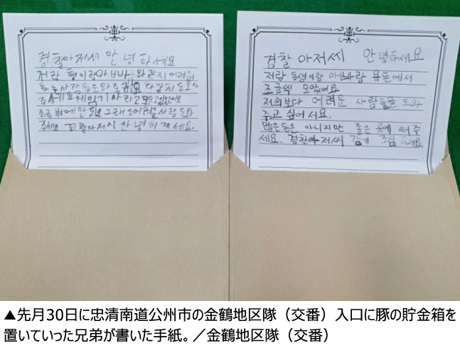 児童2人、交番に100万ウォン入った貯金箱を置いて立ち去る /公州(2/2)