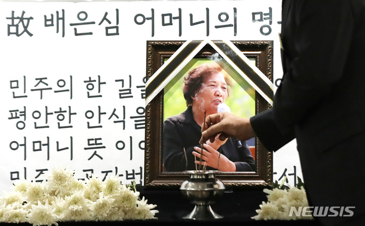 李韓烈烈士の母親、故ペ・ウンシムさんの追悼の列(5/12)