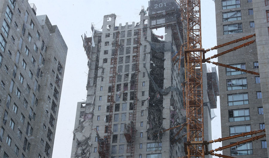 建設中のマンションで外壁崩落…1人重傷、車10台が下敷きに /光州(2/2)